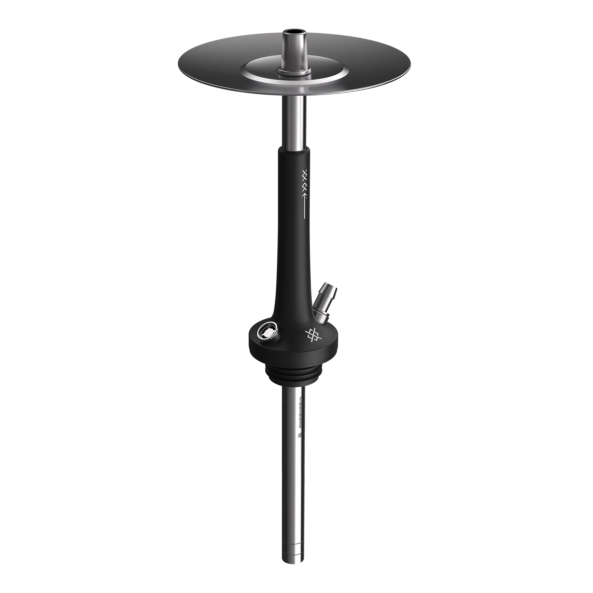 Шахта кальяна выполнена из нержавеющей стали AISI 304, что обеспечивает устойчивость к коррозии и визуальную привлекательность. Декоративная накладка из полиацеталя — полностью черная, матовая. Она стильно сочетается с серебристым металлом и гармонично дополняет минималистичный образ.